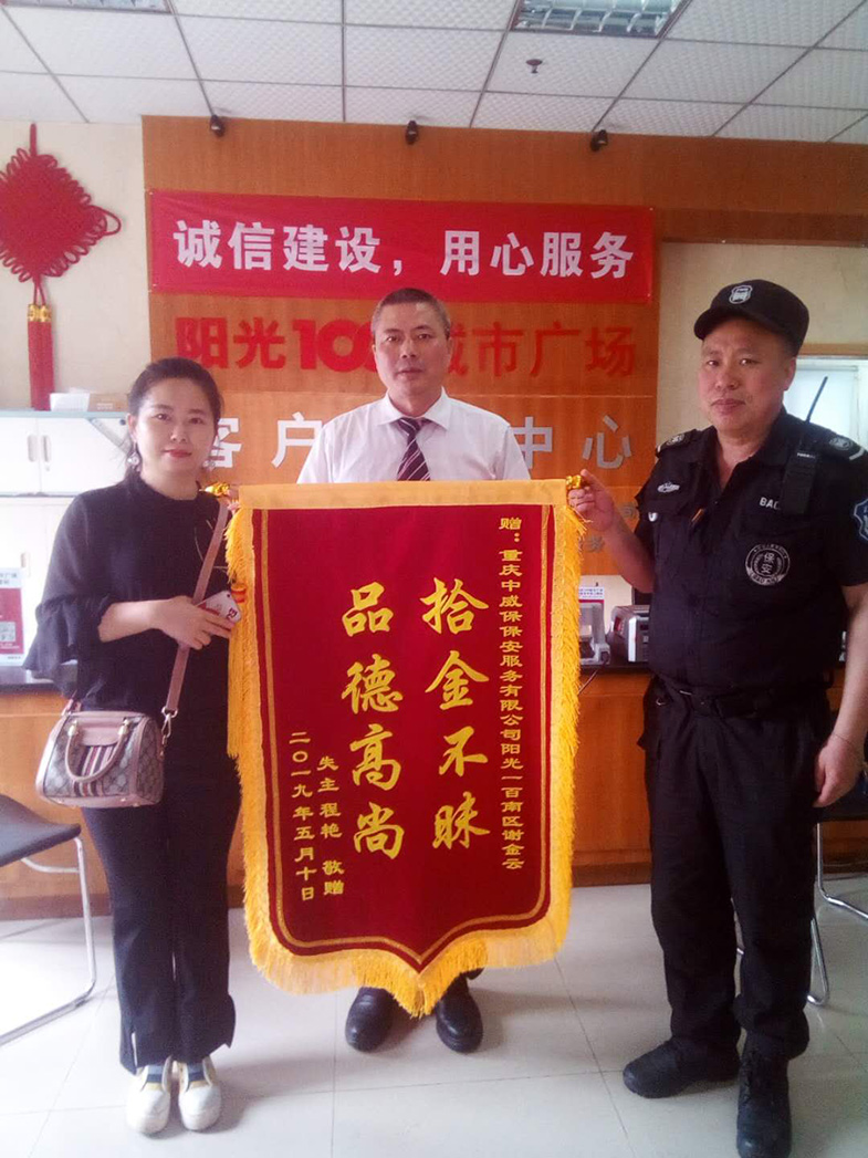 下午3點45分,程女士來到客服中心領(lǐng)取失物,經(jīng)客服中心人員仔細核實后將手機物歸原主。5月10日,程女士送來一面寫有“拾金不昧 品德高尚”的錦旗表示感謝。