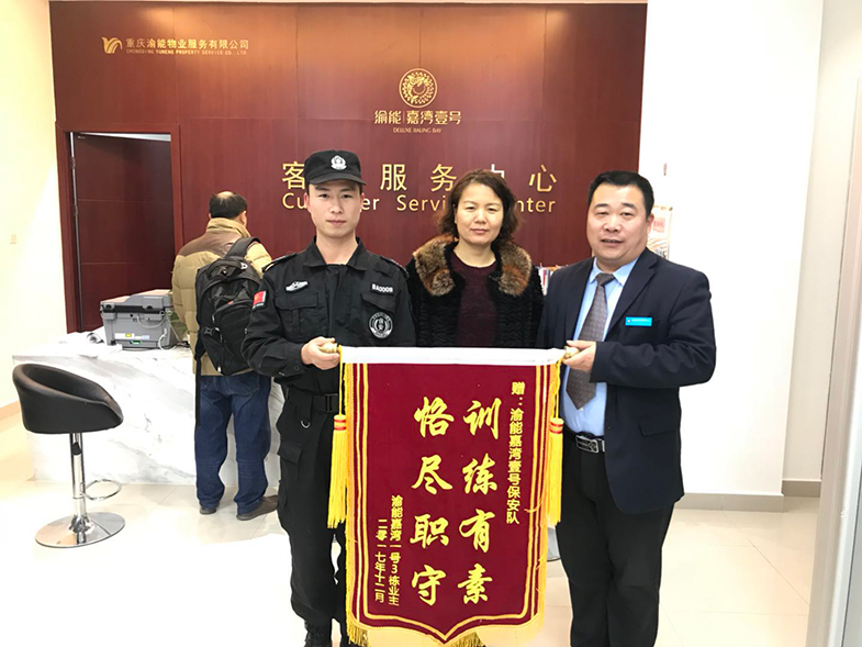 2017年12月19日清晨,我司駐渝能嘉灣壹號項目保安分隊隊長邱西平在巡查過程中發(fā)現(xiàn)小區(qū)內(nèi)一個工人正四顧張望著跑進(jìn)小區(qū)。見此情況,邱隊長馬上帶著班長緊跟其后,觀察其是否為可疑人員。當(dāng)邱西平一行追趕上前時,該男子正伙同其他人準(zhǔn)備打砸業(yè)主的門窗。為了保護(hù)好業(yè)主財產(chǎn)安全,中威戰(zhàn)士們第一時間制止其行為,并問清緣由,通知業(yè)主。原來,幾名工人在裝修過程中與業(yè)主及裝修公司產(chǎn)生了經(jīng)濟(jì)矛盾,當(dāng)業(yè)主到來時,裝修工人情緒激動,并手持斧頭棍子要行兇,被中威戰(zhàn)士機智地制服并報警處理。事后,業(yè)主特地送來錦旗,贊揚中威戰(zhàn)士恪盡職守的品質(zhì),有他們的守護(hù),業(yè)主十分安心。