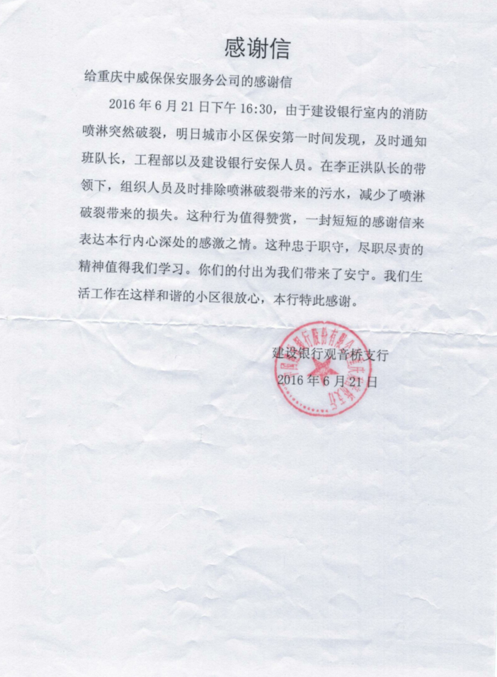 一心盡職獲業(yè)主贊揚
